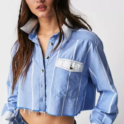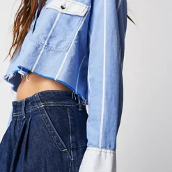 Tricia Fix Reworked Manchester Crop Top Blue Combo