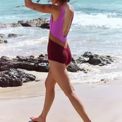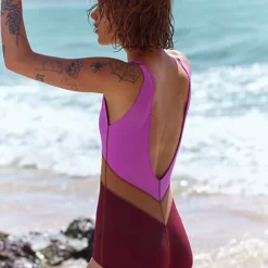 Features: Recycled fibers. printed design allover. V-neckline. thick fixed shoulder straps. low scoop back