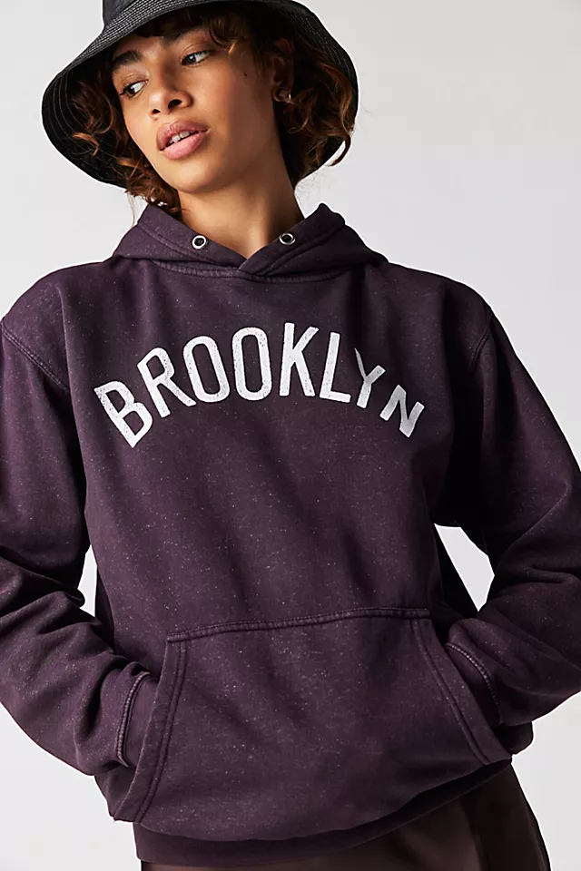 Forever cool and classic. this timeless hoodie is featured in a staple. relaxed fit and heathered fabrication with worn Brooklyn graphic at front for a true lived-in look.
