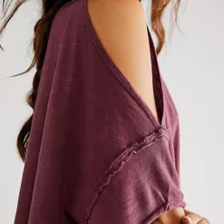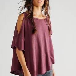Add the most timeless touch to any look with this forever effortless tee featured in a slouchy. relaxed fit with cutout detailing at shoulder and rounded bottom hem for added shape.