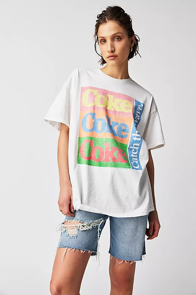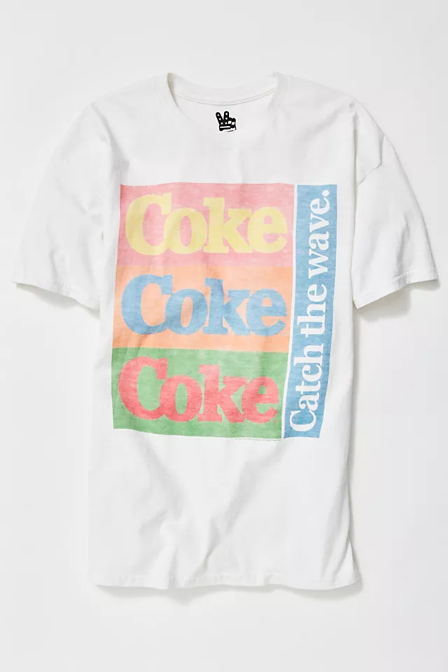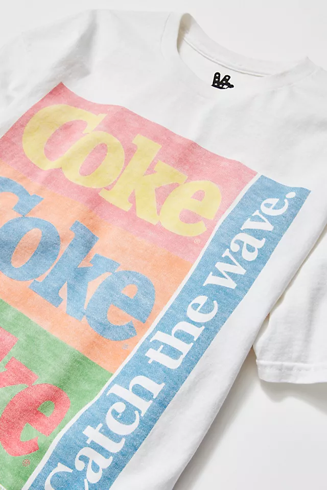 Just as effortless as it is essential. this timeless tee is featured in a versatile. vintage-inspired design with worn. colorful Coke graphic at front for a true lived-in look.