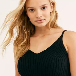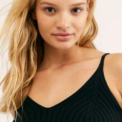 Cropped sweater knit cami featuring a ribbed design with a V-neckline.