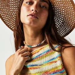 So fun and funky with a flirty touch. this stunning tank is featured in a striped knit design with super dropped armholes and contrasting. crossed. bandana-inspired back straps designed to add a special touch to any style.