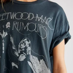 Just as effortless as it is versatile. this timeless t-shirt dress is featured in a staple. scoop neck and mini dress-inspired silhouette with worn Fleetwood Mac graphic at front for a true lived-in look.