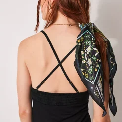 Features: Soft fabrication. V-neckline with seaming at bust. adjustable crisscross straps. high-cut legs. smocked back band
