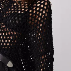 So cool in crochet. this effortlessly essential sweater is featured in a slouchy. relaxed fit and sheer fabrication designed for added dimension.