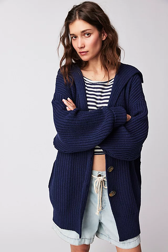 Your new go-to cardigan featured in a forever classic knit fabrication and longline. button-front silhouette with exaggerated collar detail for an added special touch.