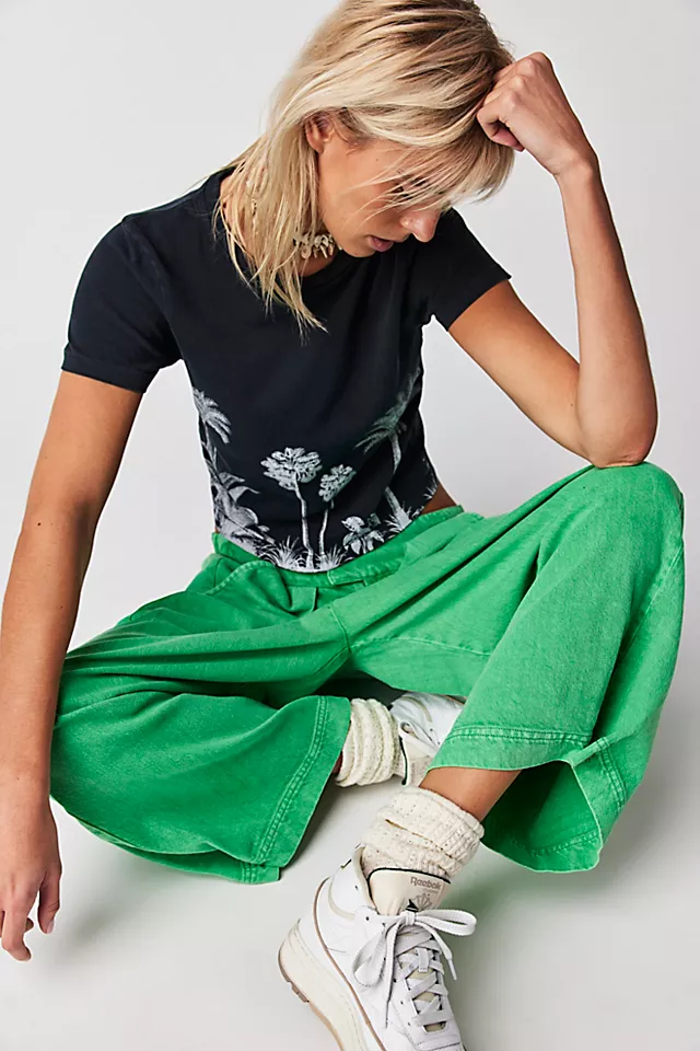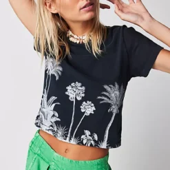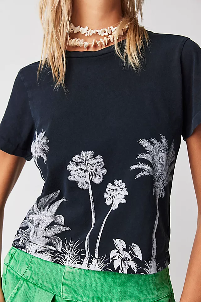 So sweet and staple in a classic baby tee fit. this effortlessly essential piece features worn palm tree graphics at front for a true lived-in look.