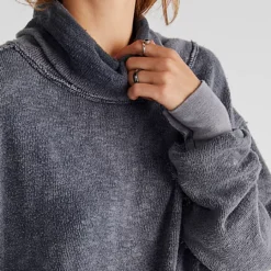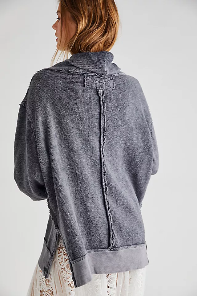 Forever effortless and just as essential. this timeless turtleneck pullover is featured in a slouchy. oversized fit with raw seaming throughout and side slits at bottom for added shape.