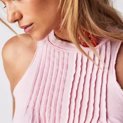 Just as effortless as it is essential. this timeless tank is featured in a drapey. flowy fit with defined pleating at bust. dropped armholes. and subtle distressing at hems for a true lived-in look.