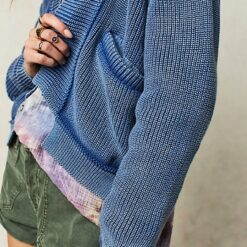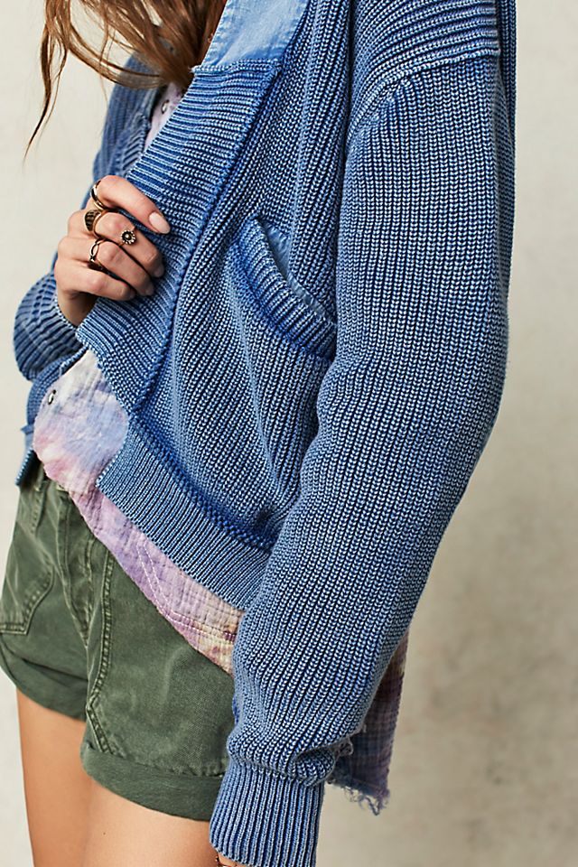 Features: Dropped shoulders. defined seaming. side pockets. open-front style. ribbed knit detailing. elbow patching