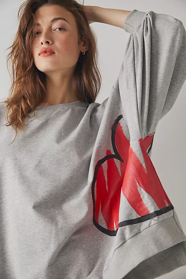 Wren & Glory Side Heart Crew Heather Grey